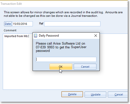 31. March 2016 23:45 by Admin 0 Comments Deleting transactions 31. March 2016 23:45 by Admin | 0 Comments Transactions can be deleted from either Select the transaction to delete and double-click A screen will display. Click Delete. Enter the Magic Code http://help.arisesoftware.co.nz/post/2016/03/31/magic-code