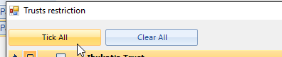 4. August 2016 22:39 by Admin 0 Comments Add trust access 4. August 2016 22:39 by Admin | 0 Comments To assign access of trust/blocks to a login/user: Select the login/user then click trusts Tick All is want to assign all blocks.